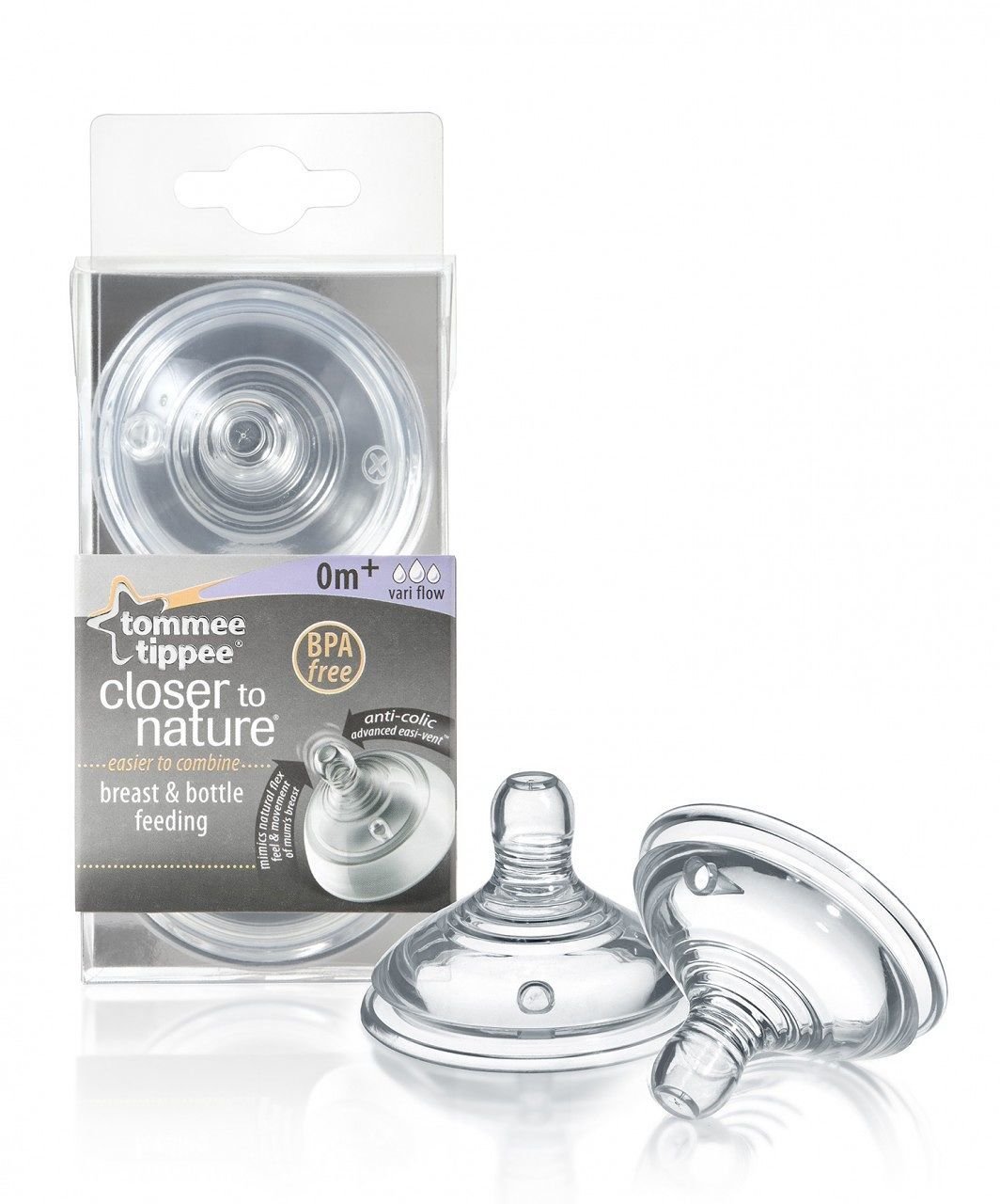 Tetinele Tommee Tippee, din gama Closer to Nature sunt compatibile cu biberoanele din aceeasi gama. Produsul este realizat din silicon, moale si placut la atingere, dotate cu o supapa anti-colici. Forma si structura tetinei imita experienta de hranire naturala.