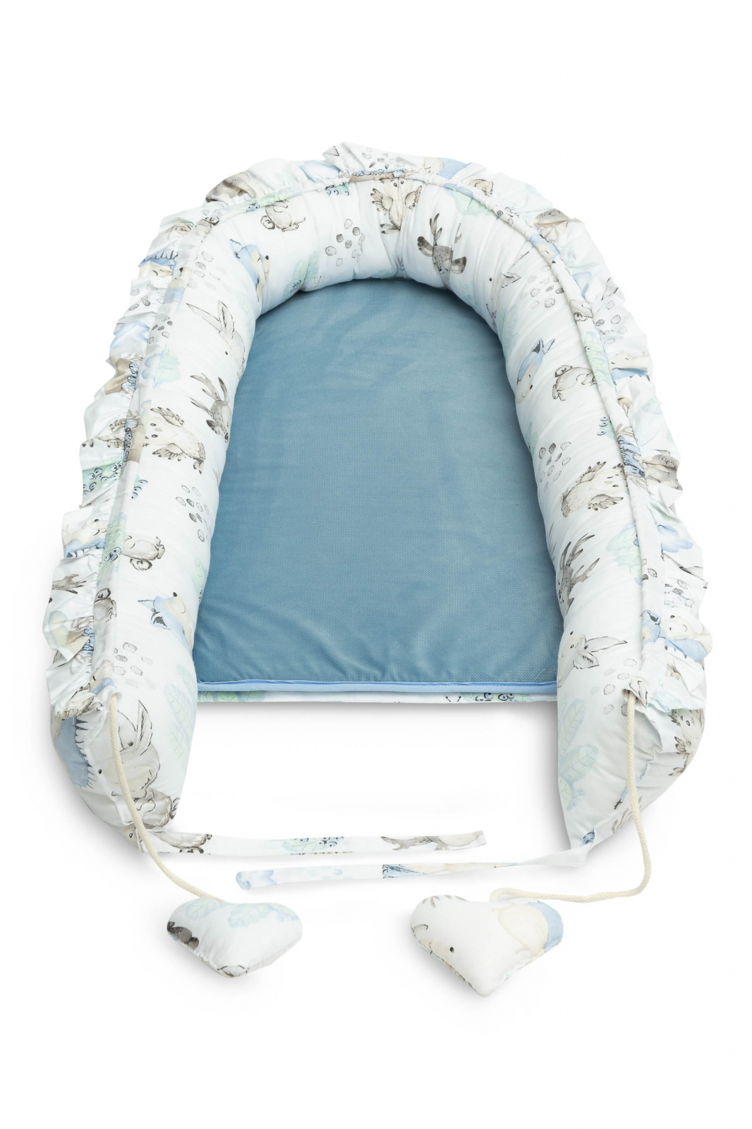 Baby nest, bumbac & catifea, bleu/alb (Blue Forest)