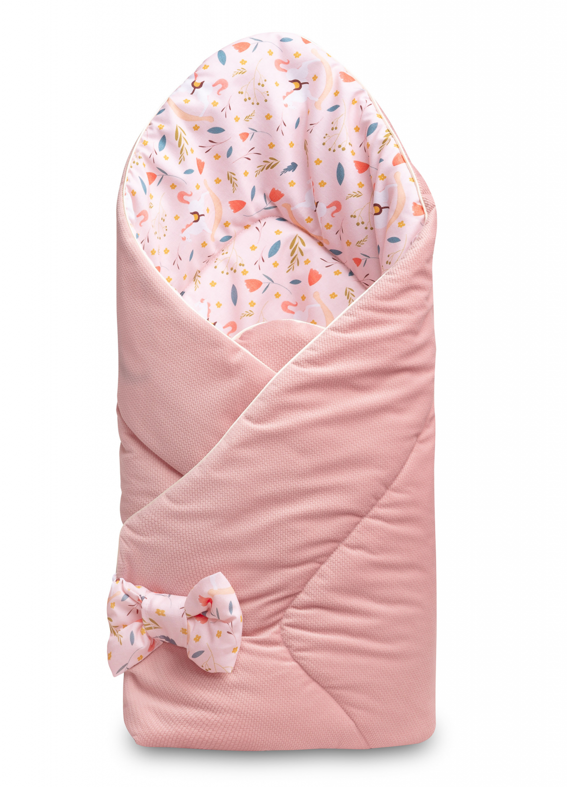 Paturica nou-nascut de infasat, cone wrap nest, bumbac catifea, reversibila (roz cu flori)